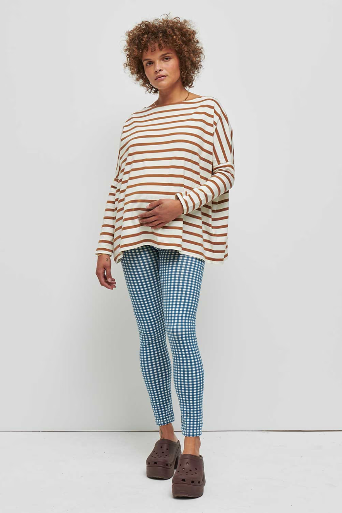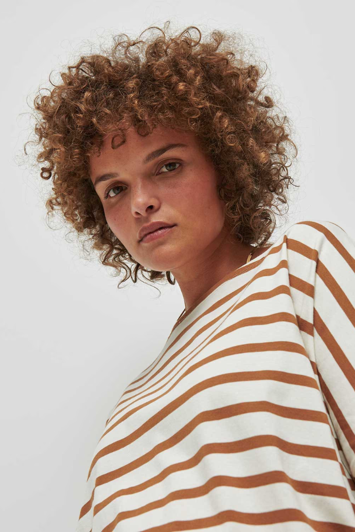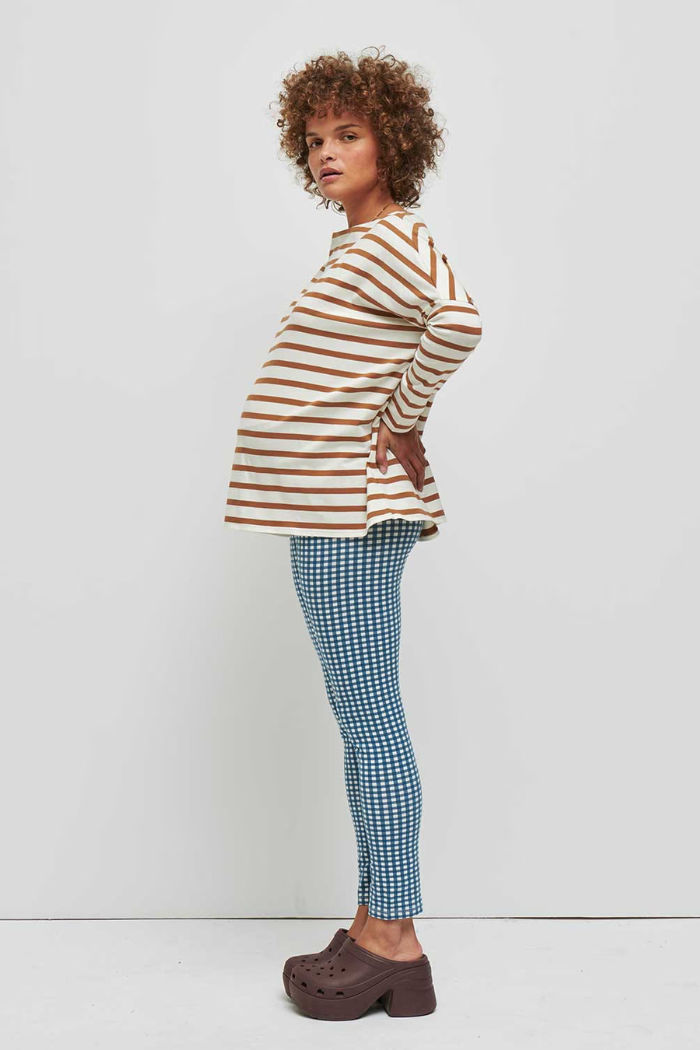 Cette marinière de grossesse en coton camel est l’une des pièces les plus faciles à intégrer dans votre garde-robe maternité. Conçue avec des rayures délicates et une maille souple, elle offre un confort quotidien tout en accompagnant harmonieusement l’évolution de votre silhouette.