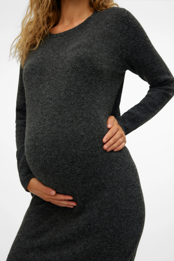 Style et confort avec la robe de maternité en maille douce gris anthracite